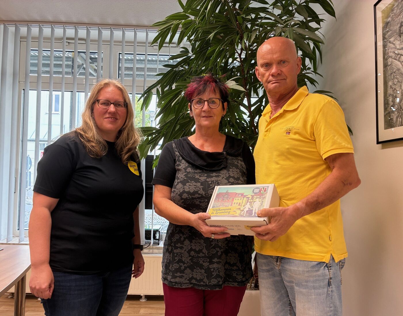 Spremberg überrascht Rückkehrer und Zuzügler mit einer Willkommensbox. Das 150. Präsent erhielt jetzt Petra Schärer und Detlef Engelmann. Sie sind aus dem gut 20 Kilometer entfernten Welzow nach Spremberg gezogen. Allein in diesem Jahr wurden 64 Boxen an 103 Neu-Spremberger überreicht. Darin befinden sich u.a. ein Kaffeebecher, Marmelade und Tee. Zuzügler kamen z.B. aus Berlin, Hamburg und Schweinfurt sowie aus dem Umland. Die Idee ging von der Initiative „Heeme fehlste“ aus.