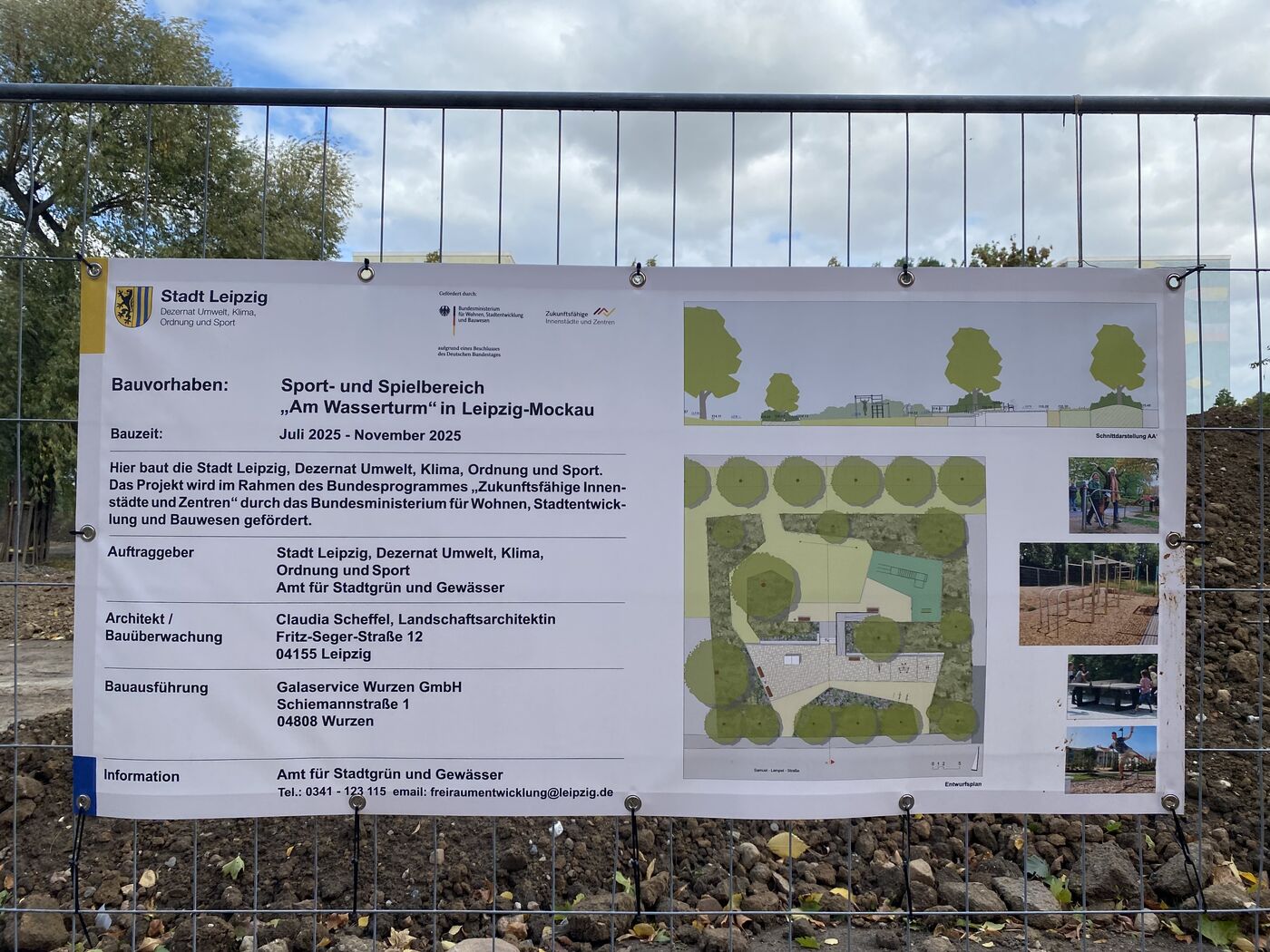 Neben dem ehemaligen Mockauer Wasserturm wird bis Jahresende ein Sport- und Spielbereich gebaut. Laut Stadt soll das Freizeitangebot dort „möglichst multifunktional und integrativ sein und generationsübergreifend genutzt werden.“ Entstehen soll zum Beispiel ein Calisthenics-Bereich, bei dem man Krafttraining mit dem eigenen Körpergewicht macht. Außerdem weitere Fitnessgeräte, eine Slackline, eine Tischtennisplatte sowie neue Bäume, Büsche und Stauden.
