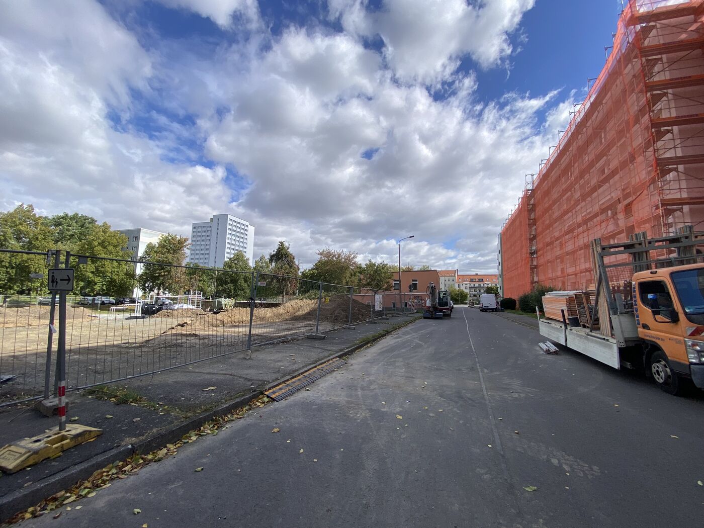 Die Bauarbeiten sind vor zwei Wochen gestartet, vorher war hier eine grüne Wiese.