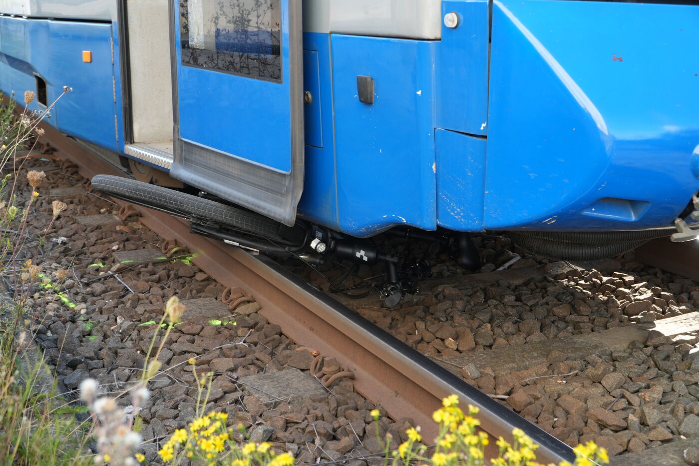 Das Fahrrad wurde bei dem Unfall unter der Straßenbahn eingeklemmt.