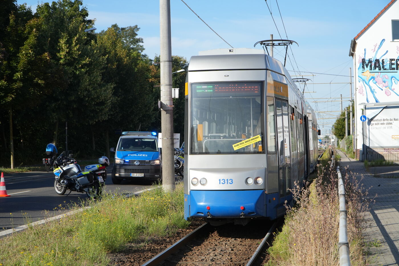 Straßenbahn überfährt Risiko-Fahrradfahrer (43) in Taucha