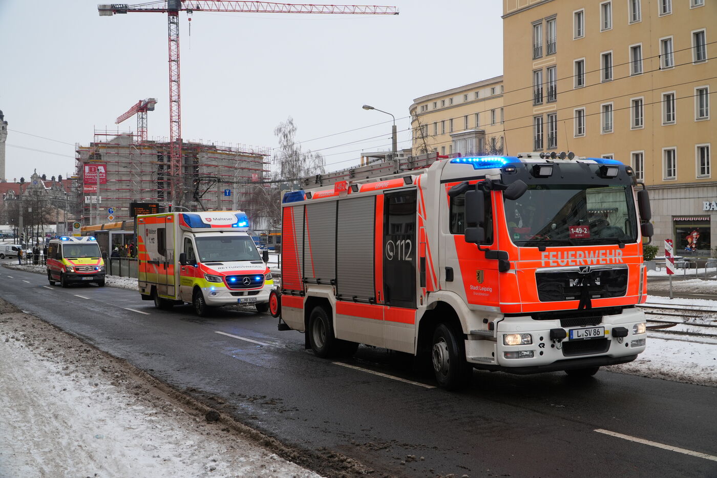 - Mehrere Rettungsfahrzeuge sind angerückt.