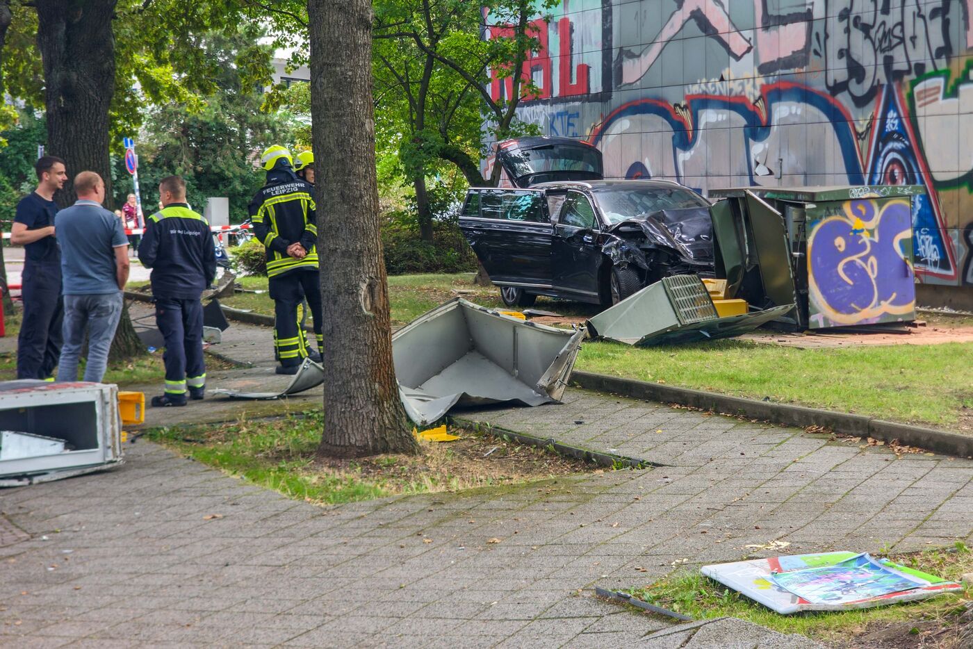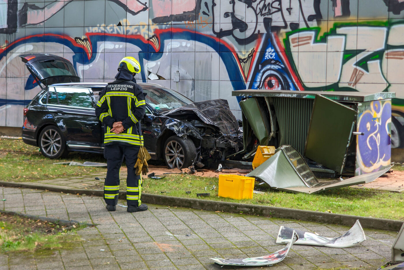 Der Stromkasten ist zerschellt, das Auto scheinbar schrottreif: Schwerer Unfall am Freitagnachmittag (gegen 15.15 Uhr) auf der Marschnerstraße im Leipziger Zentrum-West! Ein Autofahrer ist dort von der Straße geflogen, über eine Verkehrsinsel gebrettert und dann in den Kasten gekracht. Im Fahrzeug saßen laut Polizei zwei Personen. Der Fahrer sei laut einem Reporter am Unfallort verletzt ins Krankenhaus gebracht worden. Die Marschnerstraße wurde gesperrt.
