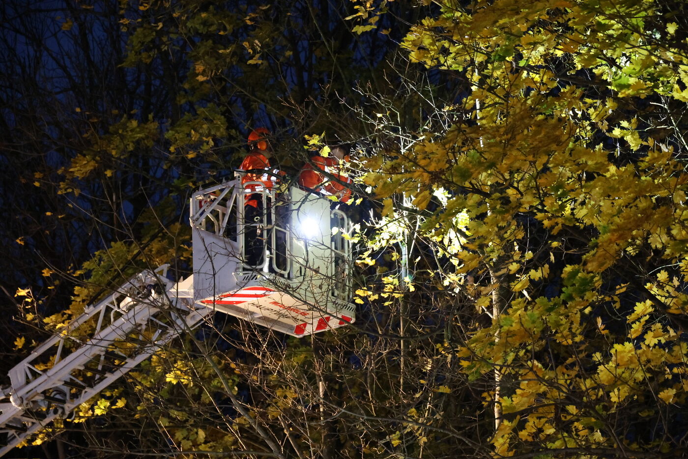 Wie unser Reporter vor Ort berichtet, gestaltete sich das Entfernen der Bäume für die Feuerwehr Erla-Crandorf schwierig, so dass die Drehleiter der Feuerwehr Schwarzenberg nachgeordert werden musste. Um zu dem betroffenen Haus zu gelangen, mussten zwei weitere Bäume zwischen der S272 und dem Wohnhaus gefällt werden.