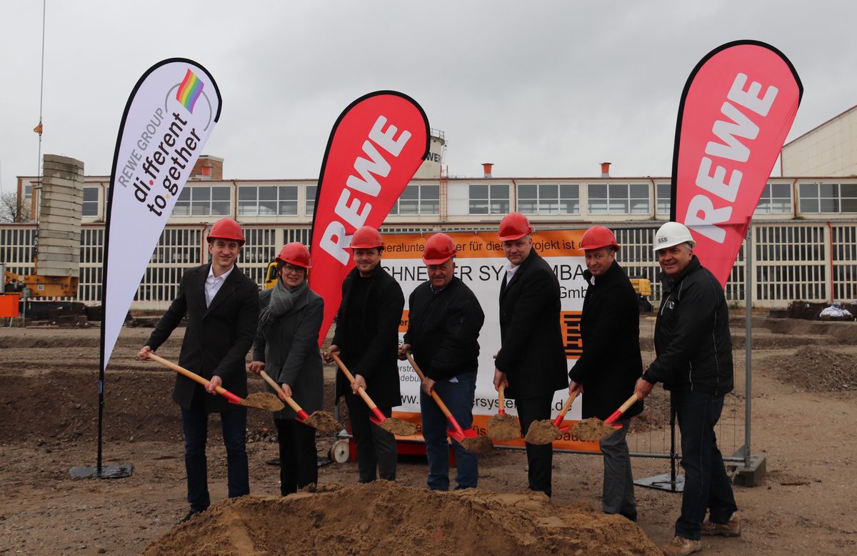 Auf dem Gelände des früheren Presswerks in Ottendorf-Okrilla entsteht ein Supermarkt. Am Freitag gab es den ersten feierlichen Spatenstich für das Projekt der Rewe-Gruppe. Noch vor Weihnachten soll der Markt eröffnen.