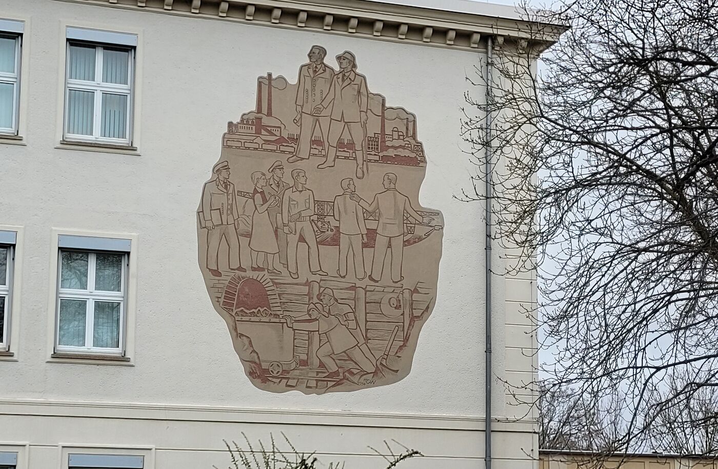Denkmalgeschütztes Relief am Hauptgebäude der BTU in Senftenberg
