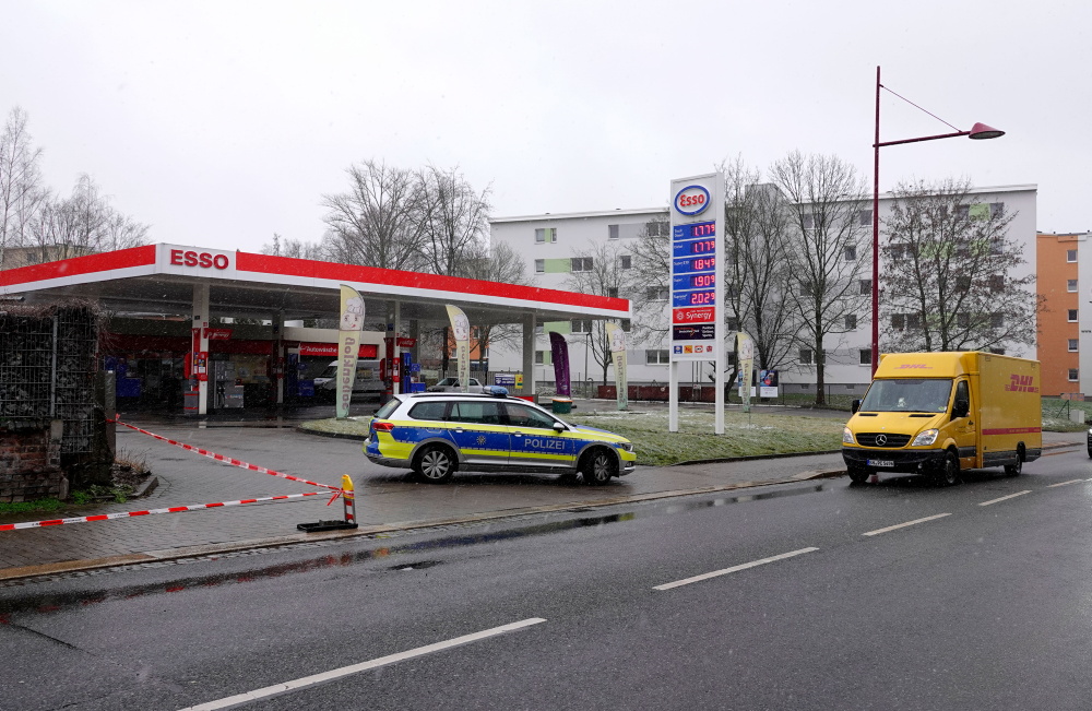 Eine Tankstellen-Mitarbeiterin erlitt einen Schock. Die Polizei rückte an und sicherte Spuren, außerdem kam ein Fährtenhund zum Einsatz. Die Limbacher Straße musste mehrfach kurz gesperrt werden.