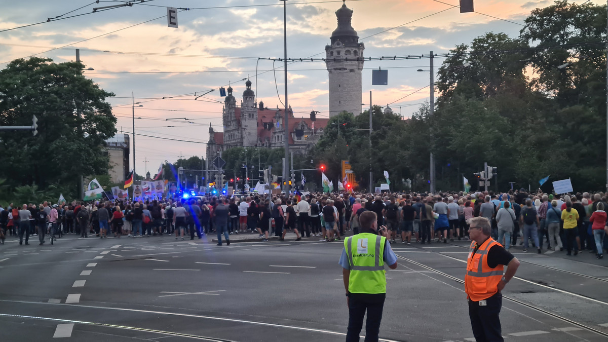 Tausende Menschen haben am Montag in Leipzig gegen die Politik der Bundesregierung demonstriert. Der Protest auf dem Augustusplatz richtete sich gegen die stark gestiegenen Energie- und Lebensmittelpreise, gegen Waffenlieferungen an die Ukraine, aber auch gegen Coronamaßnahmen und Impfpflicht.