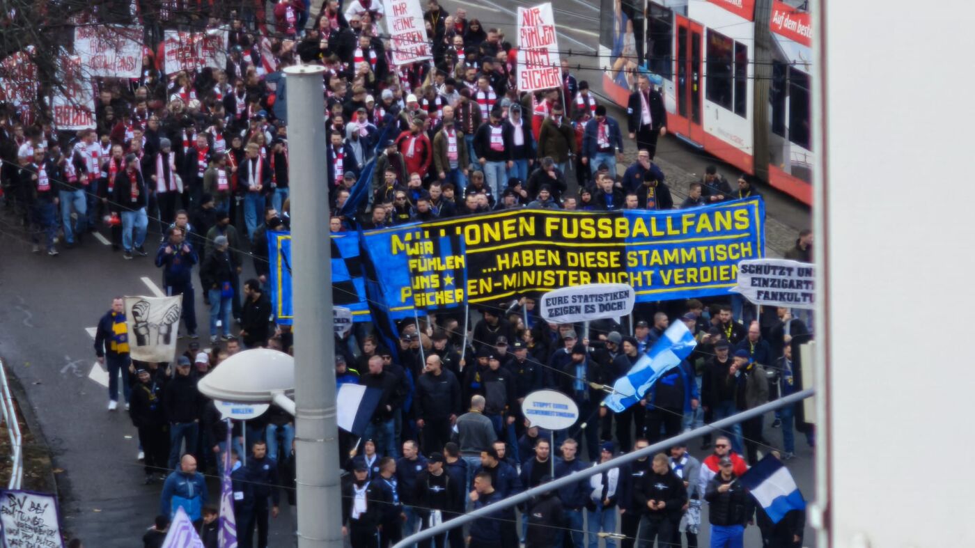 Die Fanszenen in Deutschland halten die geplanten Maßnahmen der Innenministerien für überzogen und einseitig. Konkret richtet sich der Unmut der organisierten Fans gegen zentral verfügte Stadionverbote, das Personalisieren der Eintrittskarten und eine aus ihrer Sicht flächendeckende Überwachung. Die Demo verlief friedlich