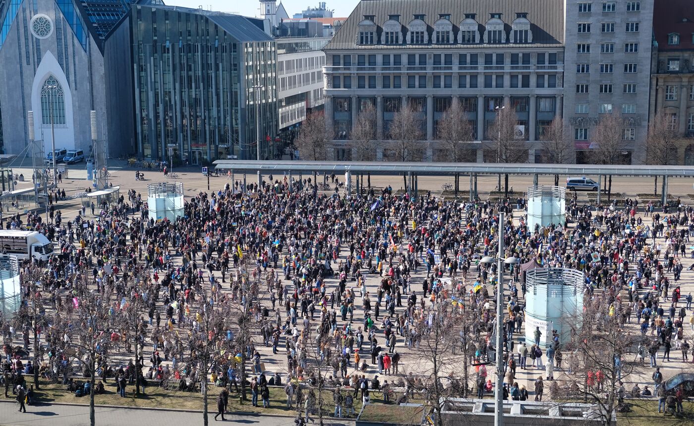 Tausende demonstrieren in Leipzig gegen den Krieg - Stadtchef singt