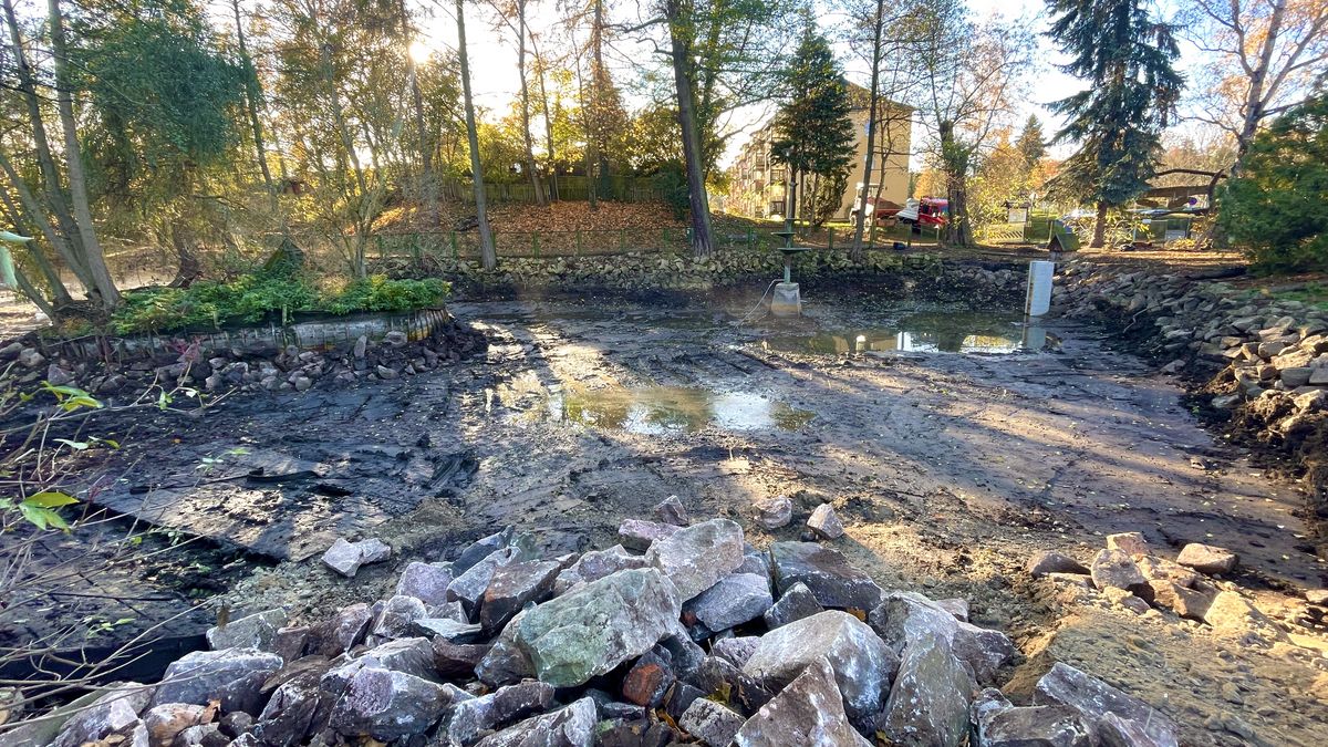 In den letzten Wochen wurde der Teich ausgebaggert. Damit soll sich die Wasserqualität erheblich verbessern, hieß es. An den Ufern werden Steine aufgeschüttet, in der Hoffnung dass sich dort Kleinlebewesen ansiedeln. Auch Nistmöglichkeiten für Wasservögel sollen geschaffen werden.