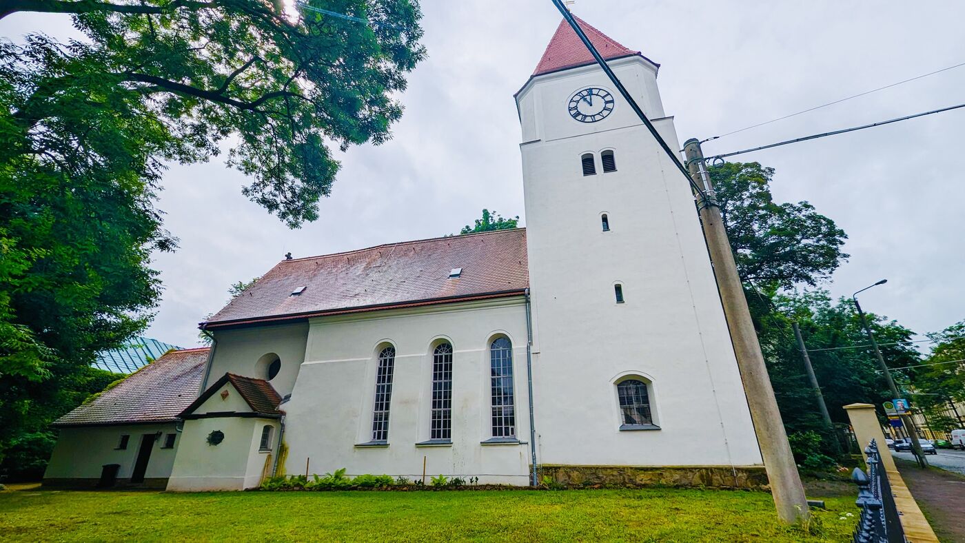 - Die Stephanuskirche an der Kieler Straße im Leipziger Stadtteil Mockau-Nord, hier klauten Diebe Teile der etwa 150 Jahre alten Orgel.