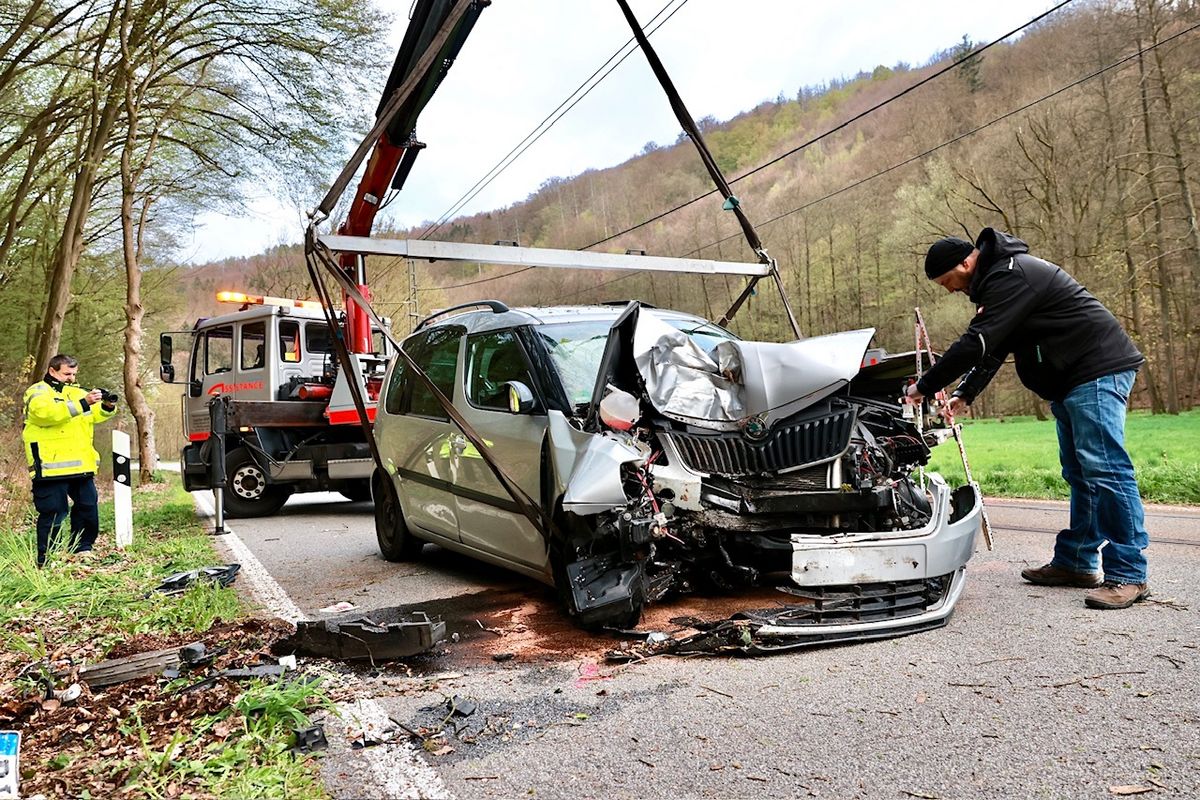 Der Skoda krachte auf der Kirnitzschtalstraße frontal gegen einen Baum.