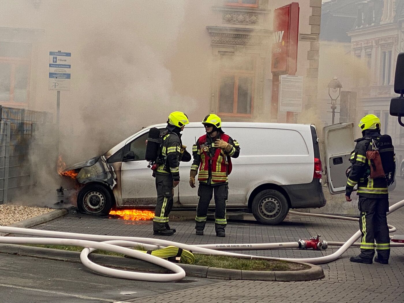 Transporter brennt auf Supermarktparkplatz