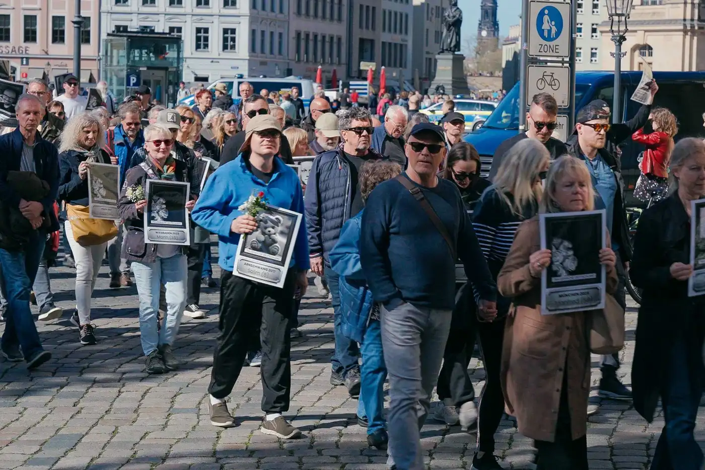 Hunderte Menschen haben am Samstagnachmittag in Dresden der Opfer von Attentaten und Anschlägen seit 2015 gedacht. Etwa 500 Teilnehmer waren dem Aufruf der Trauerwache Deutschland gefolgt, die den Fokus vor allem auf die Todesopfer von Gewalttaten durch Migranten richtet. Mit Fotos und Blumen zog der Trauermarsch vom Neumarkt aus durch Dresden. Mitinitiator Michael Kyrath führte die Trauerwache an. Seine 17-jährige Tochter Ann-Marie und ihr Freund wurden 2023 in einem Regionalzug von Kiel nach Hamburg von einem staatenlosen Palästinenser getötet.