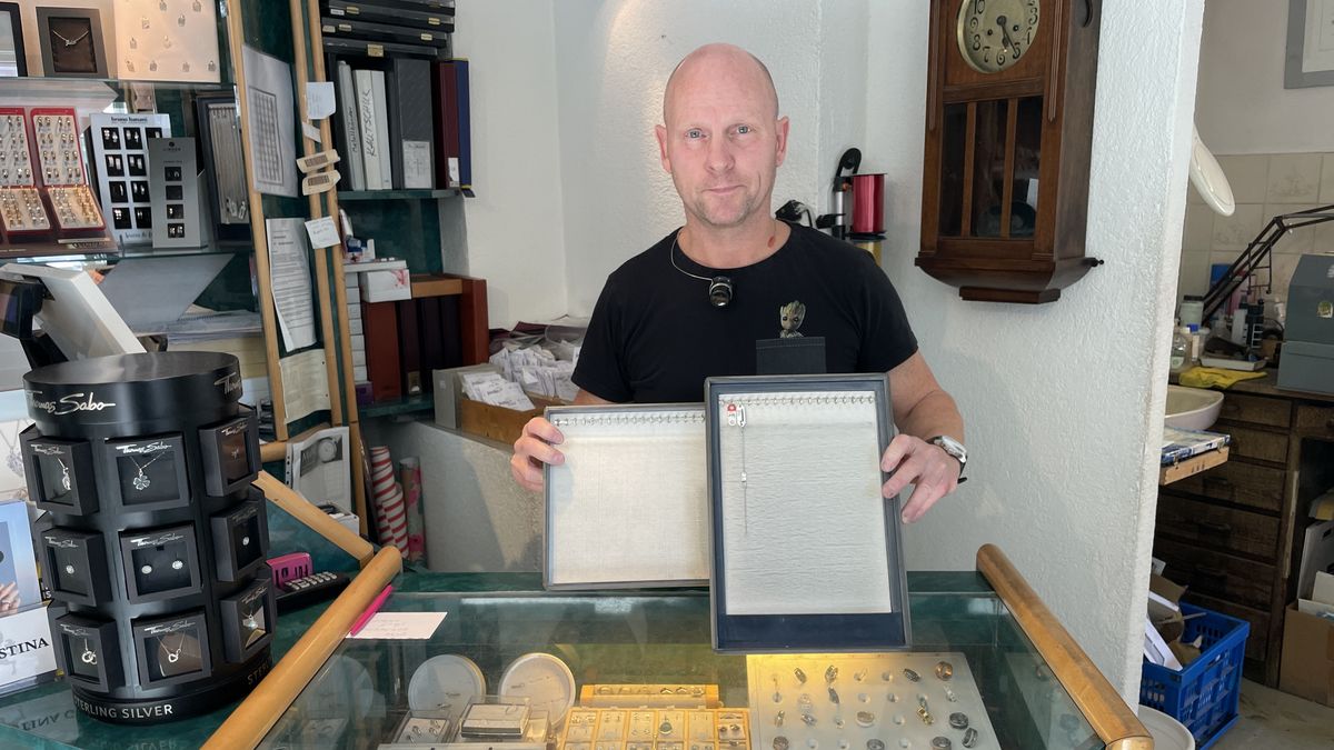 Inhaber Andreas Streit zeigt die leeren Schmuckauslagen.