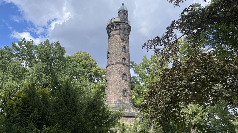 Im Stadtteil Räcknitz befindet sich die 23 Meter hohe Bismarcksäule.