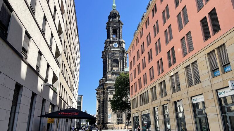 Der Aussichtsturm der Kreuzkirche wurde 1792 erbaut und prägt seitdem das Dresdner Stadtbild.