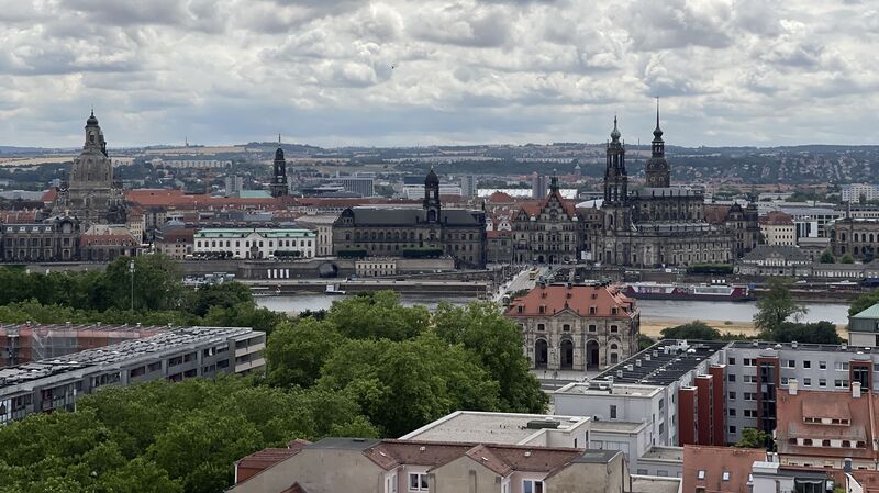 Vorbei an den drei Kirchenglocken und über steile Wendeltreppen geht es rauf auf die Aussichtsplattform. Von da aus hat man dann einen beeindruckenden Blick von der Neustadt, über die Elbe bis hin zur Altstadt mit ihren Wahrzeichen.