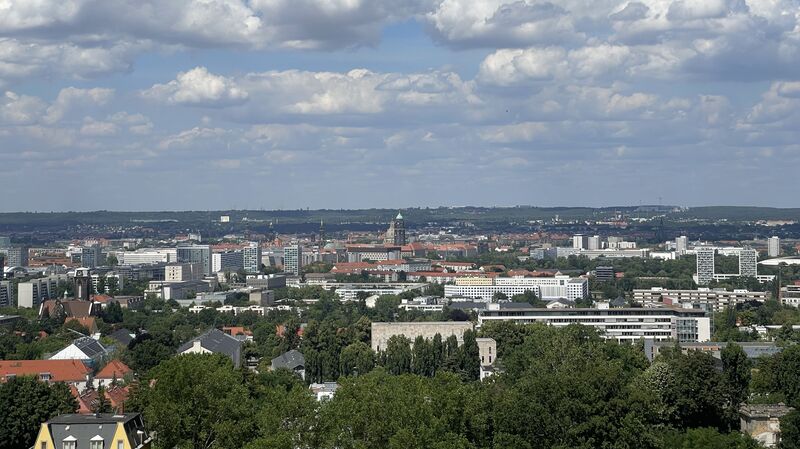 Der Ernemannturm im Dresdner Stadtteil Striesen ist ein echter Geheimtipp. Der 48 Meter hohe Backsteinturm gehört zu den Technischen Sammlungen Dresden und bietet einen beeindruckenden 360-Grad-Blick über die Stadt - von der Altstadt bis hin zur Sächsischen Schweiz.