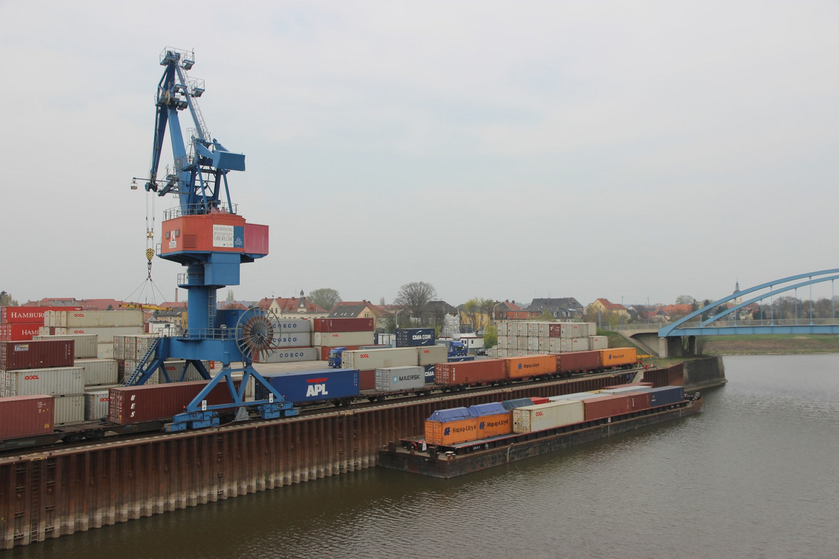 Der Containerterminal im Hafen Riesa. (Archivbild)