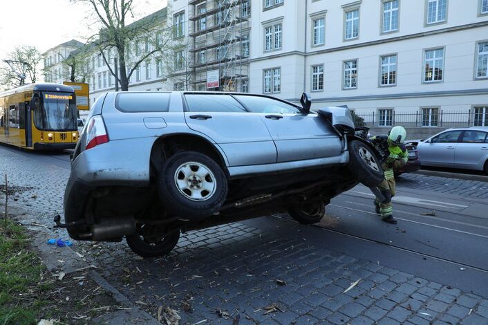 Ein umgestürztes Fahrzeug hat am Dienstagmorgen den Berufsverkehr auf der Königsbrücker Straße in der Dresdner Neustadt ausgebremst. Kurz nach der Kreuzung Stauffenbergallee lag der Subaru Richtung Stadt quer über der Fahrbahn. Offenbar war der Fahrer zuvor gegen einen Baum gestoßen. Der 61-Jährige konnte sich laut Feuerwehrsprecher Michael Klahre wohl selbst aus dem Auto befreien und soll auch unverletzt geblieben sein.