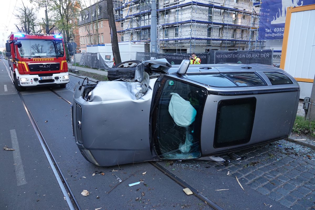 Umgestürztes Auto sorgt für Stau auf der Königsbrücker