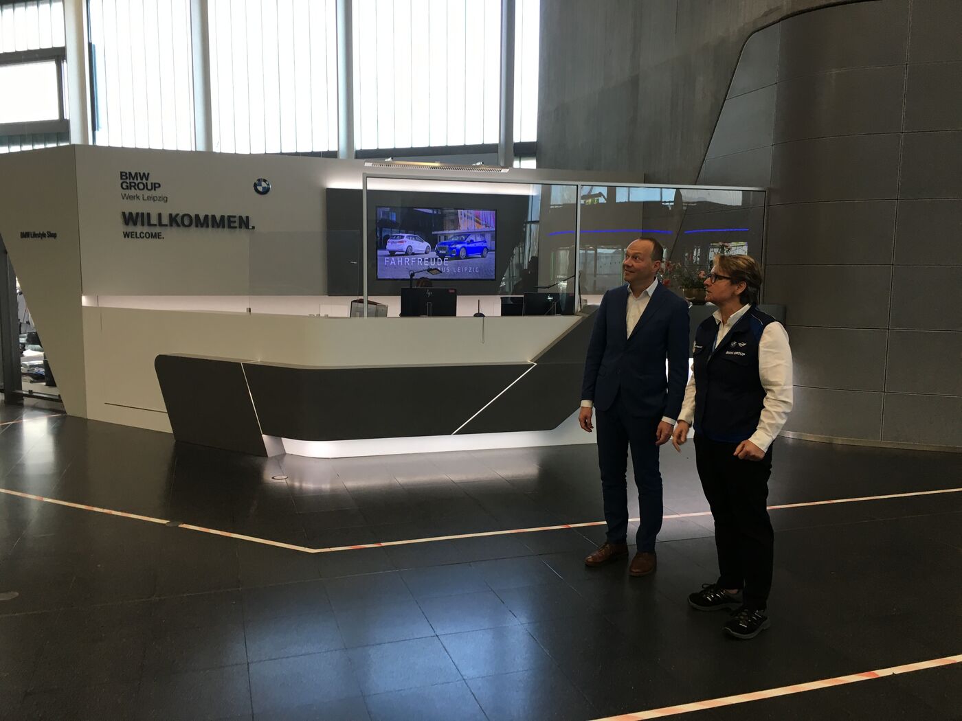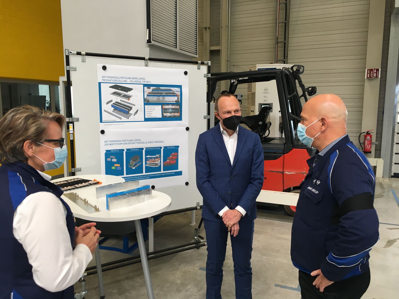 Umweltminister Wolfram Günther hat im Rahmen seiner „Erneuerbare-Energien-Tour“ auch Station im Leipziger BMW-Werk gemacht.
