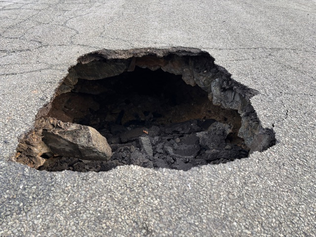 Vor Ort wurde das Loch vermessen. Es ist ca. einen Meter mal 0,7 Meter breit und fast 3,5 Meter tief. Der Bereich wurde abgesperrt.