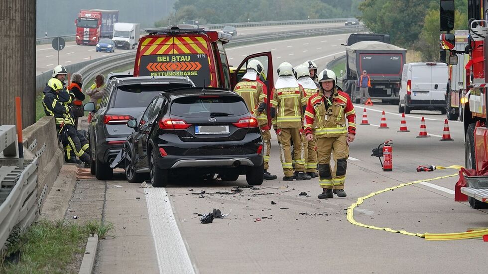 Die Teile verteilten sich laut Polizei auf der Fahrbahn. Der Autofahrer bremste, woraufhin zwei andere auffuhren. Zudem fuhr ein Kleintransporter über Trümmerteile und wurde beschädigt. Zwei Fahrer erlitten leichte Verletzungen. Es entstand ein Schaden in Höhe von geschätzten 40.000 Euro.