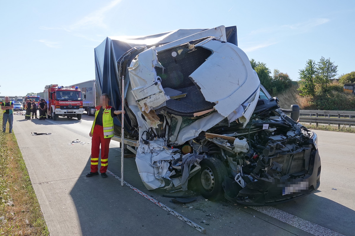 Unfall auf A4: Kleintransporter kracht auf LKW