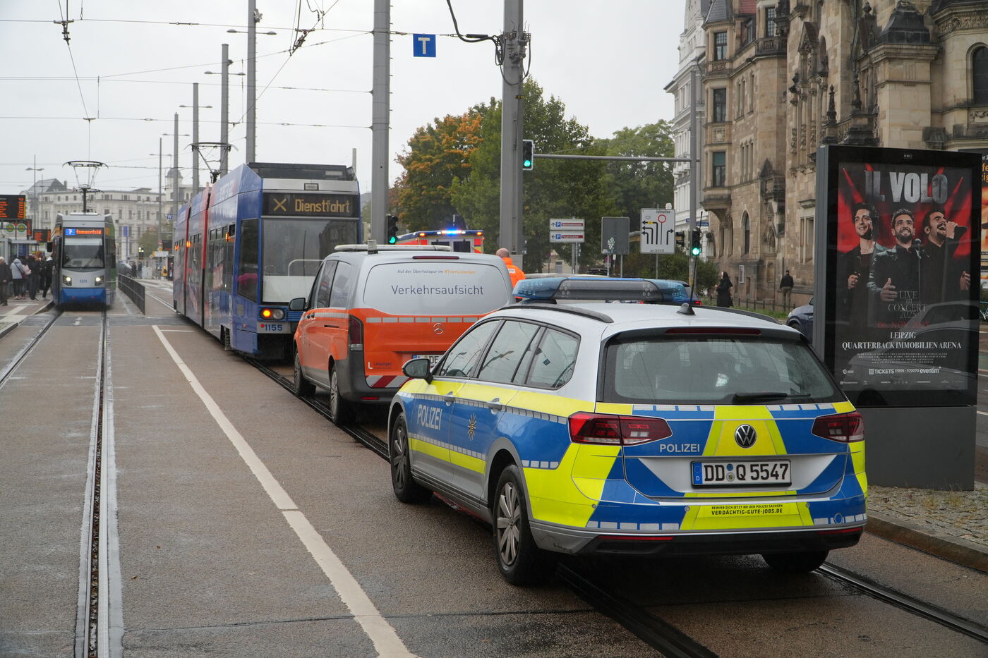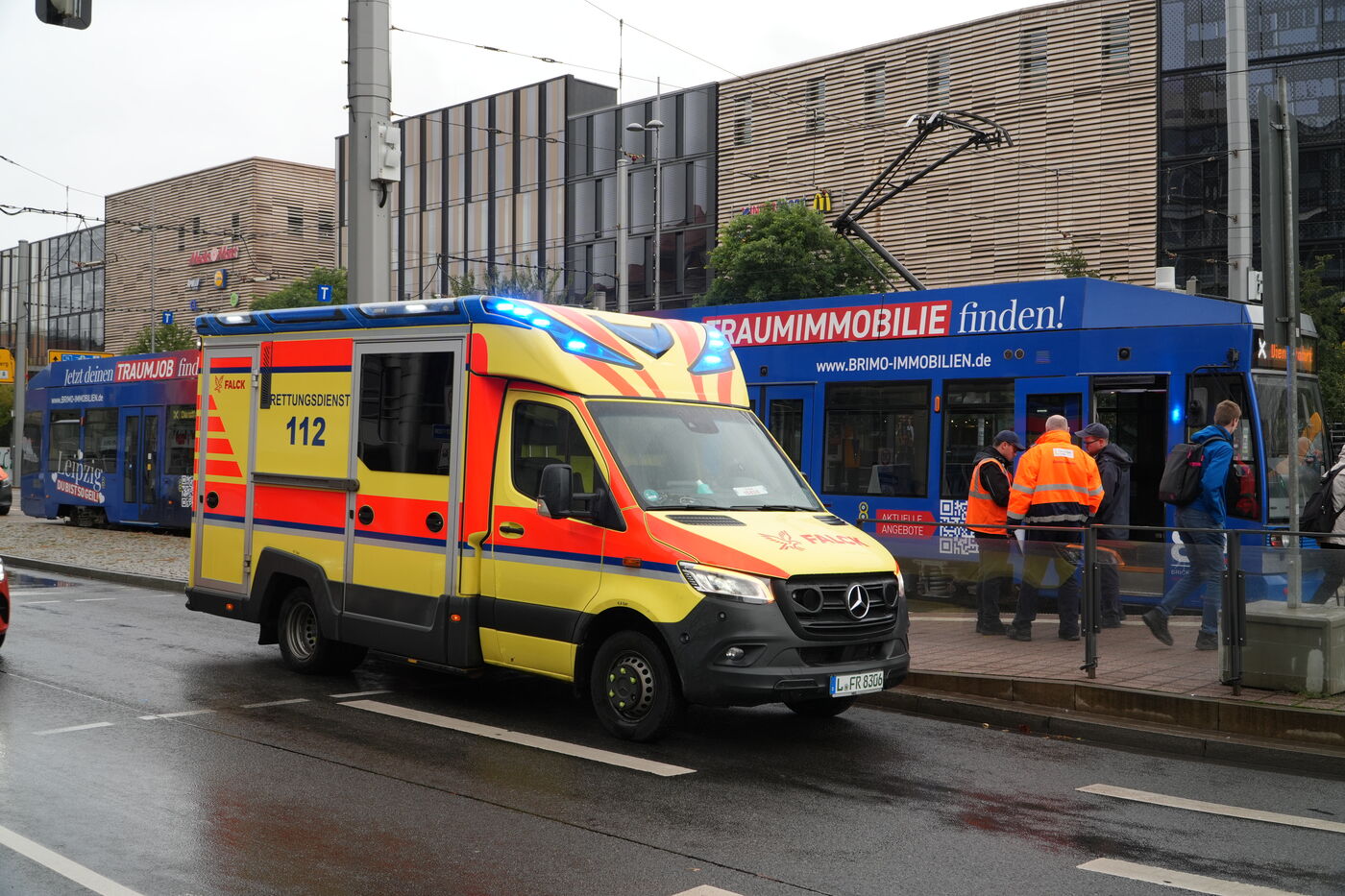 Ein Rettungswagen an der Unfallstelle auf dem Leipziger Goerdelerring.