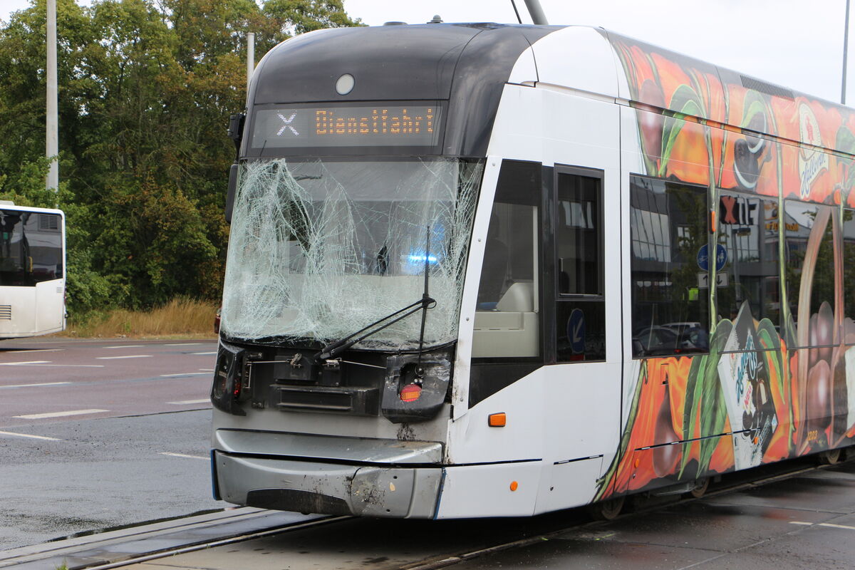 Auf der Lützner Straße in Leipzig sind am Donnerstagmittag ein LKW und eine Straßenbahn zusammengestoßen. Dadurch kam es für etwa anderthalb Stunden zu Einschränkungen im Straßenbahnverkehr der Linien 8 und 15, das sagte uns der Verkehrsunfalldienst der Verkehrsbetriebe. Zum Unfall gekommen sei es laut Polizei, weil ein 34-jähriger LKW-Fahrer eine rote Ampel auf der Rechtsabbiegerspur zur Brünner Straße übersehen habe. Als er die Gleise passierte, kam es zum Zusammenstoß. Dadurch drehte sich der LKW so, dass er mit einem Ampelmast kollidierte. Der 57-jährige Straßenbahnfahrer und ein Fahrgast wurden verletzt. Der LKW musste abgeschleppt werden. Der Verkehrsunfalldienst hat die Ermittlungen übernommen.