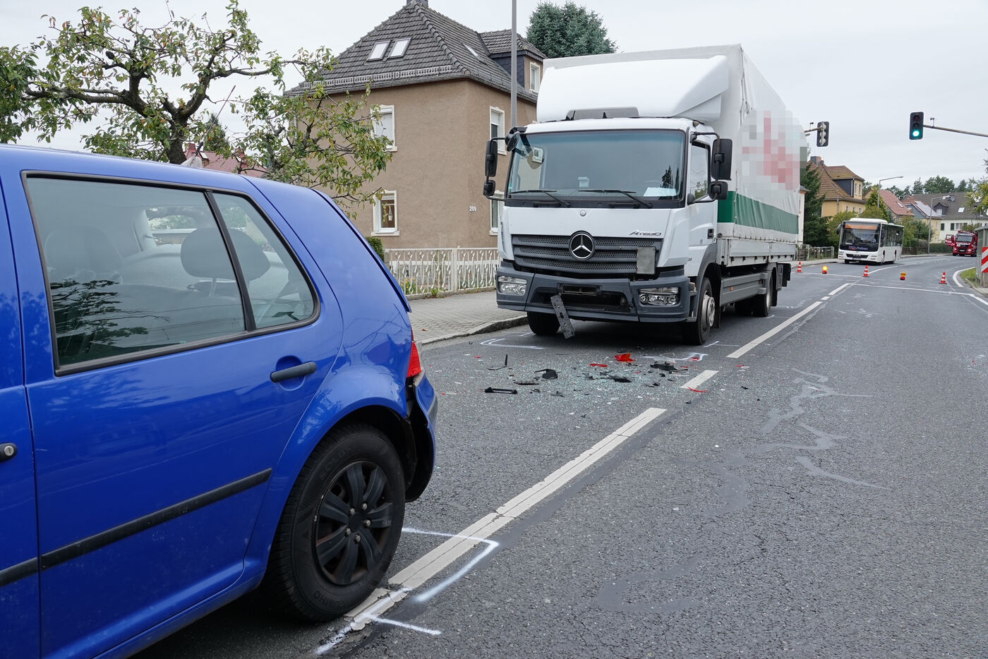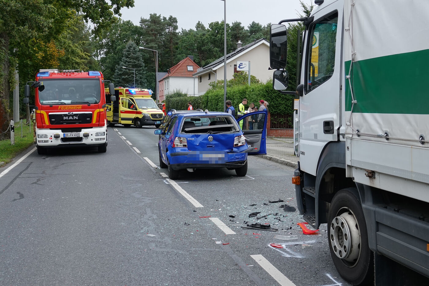 Bei einem Unfall in Dresden-Weixdorf sind mehrere Menschen verletzt worden. Erstinformationen zufolge war ein LKW am Freitagnachmittag gegen 14.30 Uhr auf der Königsbrücker Landstraße unterwegs, als er in Höhe des Fuchsberges auf zwei Autos auffuhr. Die beiden Fahrzeuge, ein VW und Renault, wurden aufeinander geschoben.