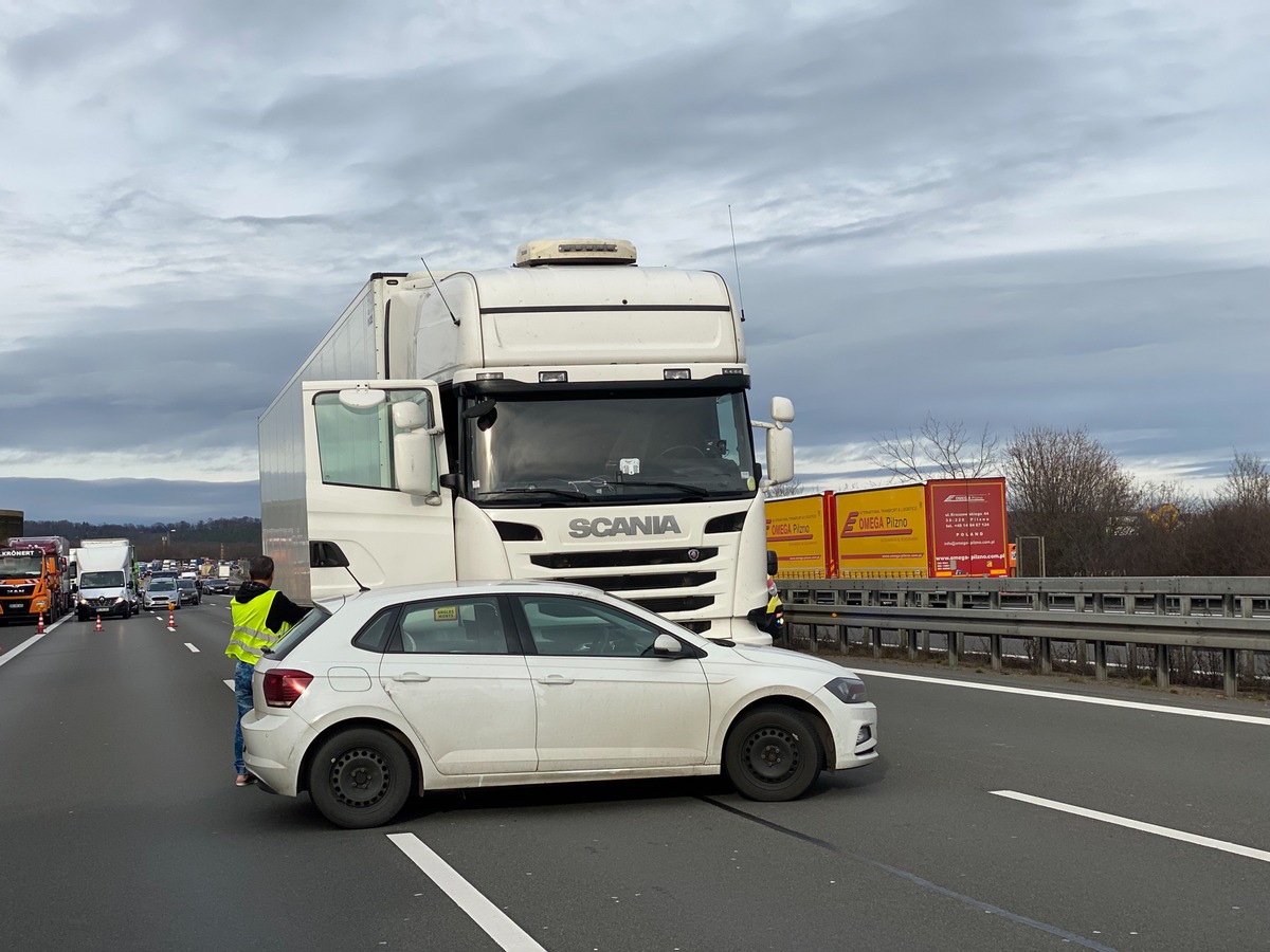 Ein Unfall hat die A4 am Montagnachmittag kurzzeitig lahmgelegt. Wie die Polizei mitteilte, hatte ein 65 Jahre alter Sattelzug-Fahrer kurz vor der Abfahrt Neustadt die Spur wechseln wollen. Doch dabei hatte er offenbar einen VW-Polo übersehen und stieß daraufhin mit der 40-jährigen Fahrerin zusammen.