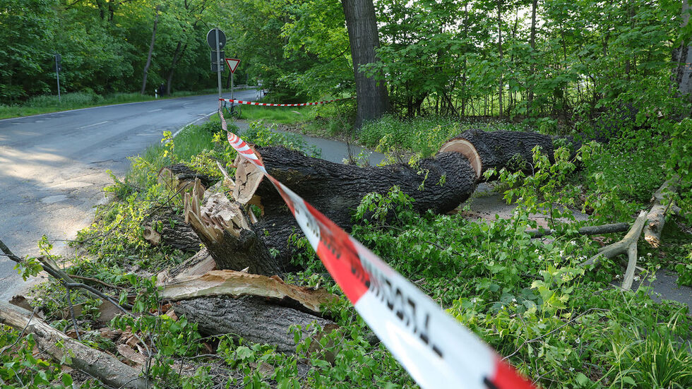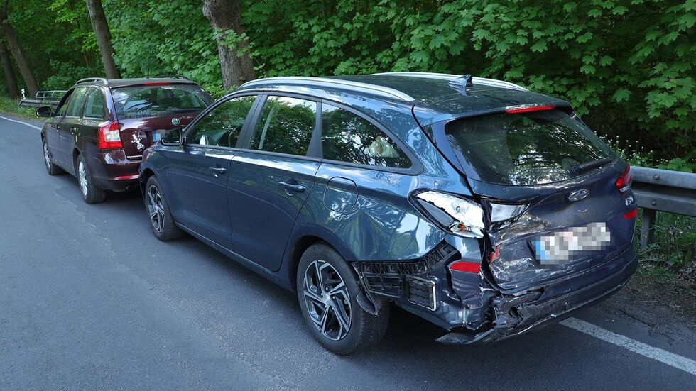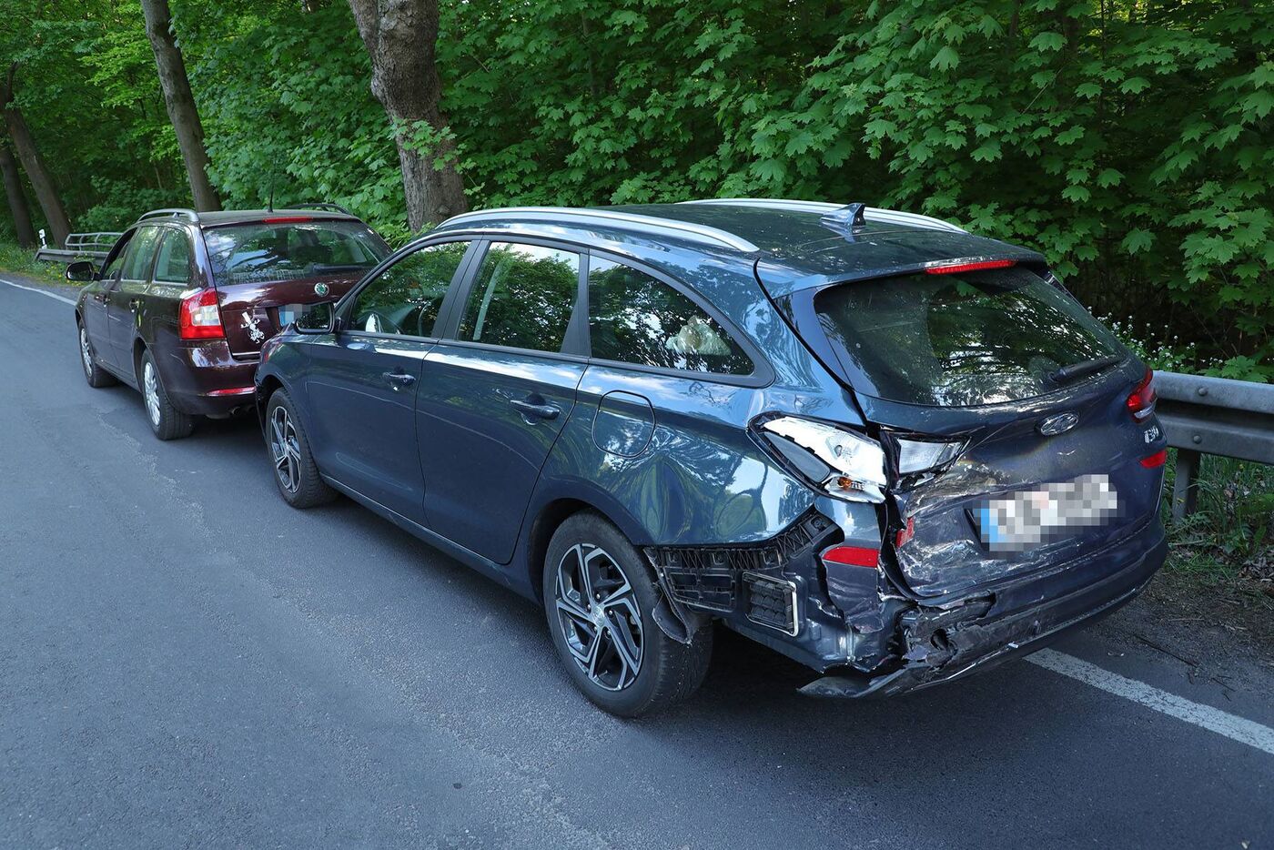 Laut Informationen unseres Reporters war zuvor ein Baum auf die Staatsstraße gekippt und blockierte die Fahrbahn. Deshalb hatten der Hyundai und der Skoda angehalten.