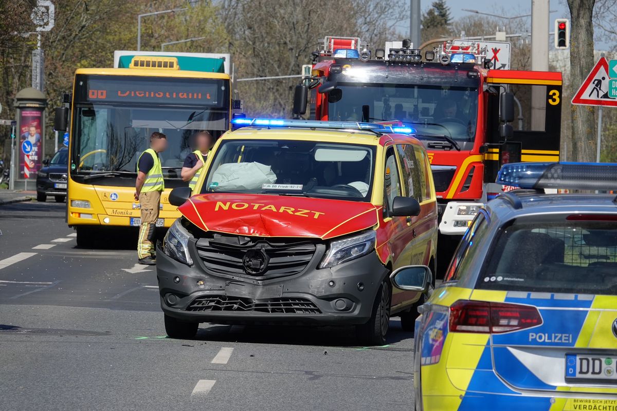 Der Opelfahrer kam verletzt in ein Krankenhaus. Auch die Besatzung des Notarztwagens wurde verletzt und durch Kollegen des Rettungsdienstes vor Ort versorgt. Die Teplitzer Straße musste zeitweise gesperrt werden. Die Buslinien 66 und 85 wurden umgeleitet. Die Ermittlungen zu der Unfallursache laufen, auch die Höhe des Sachschadens ist noch nicht bekannt.