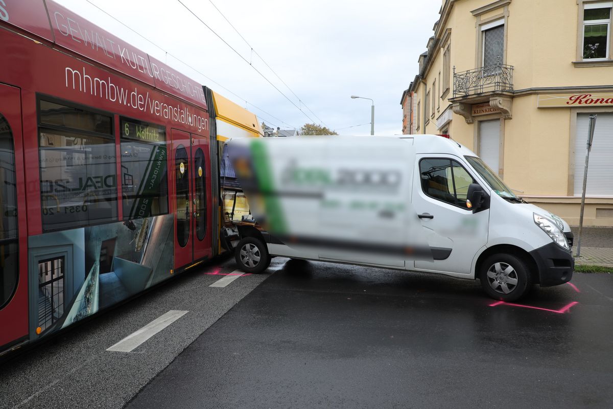 - Der Renault stieß mit einer Straßenbahn der Linie 6 zusammen.