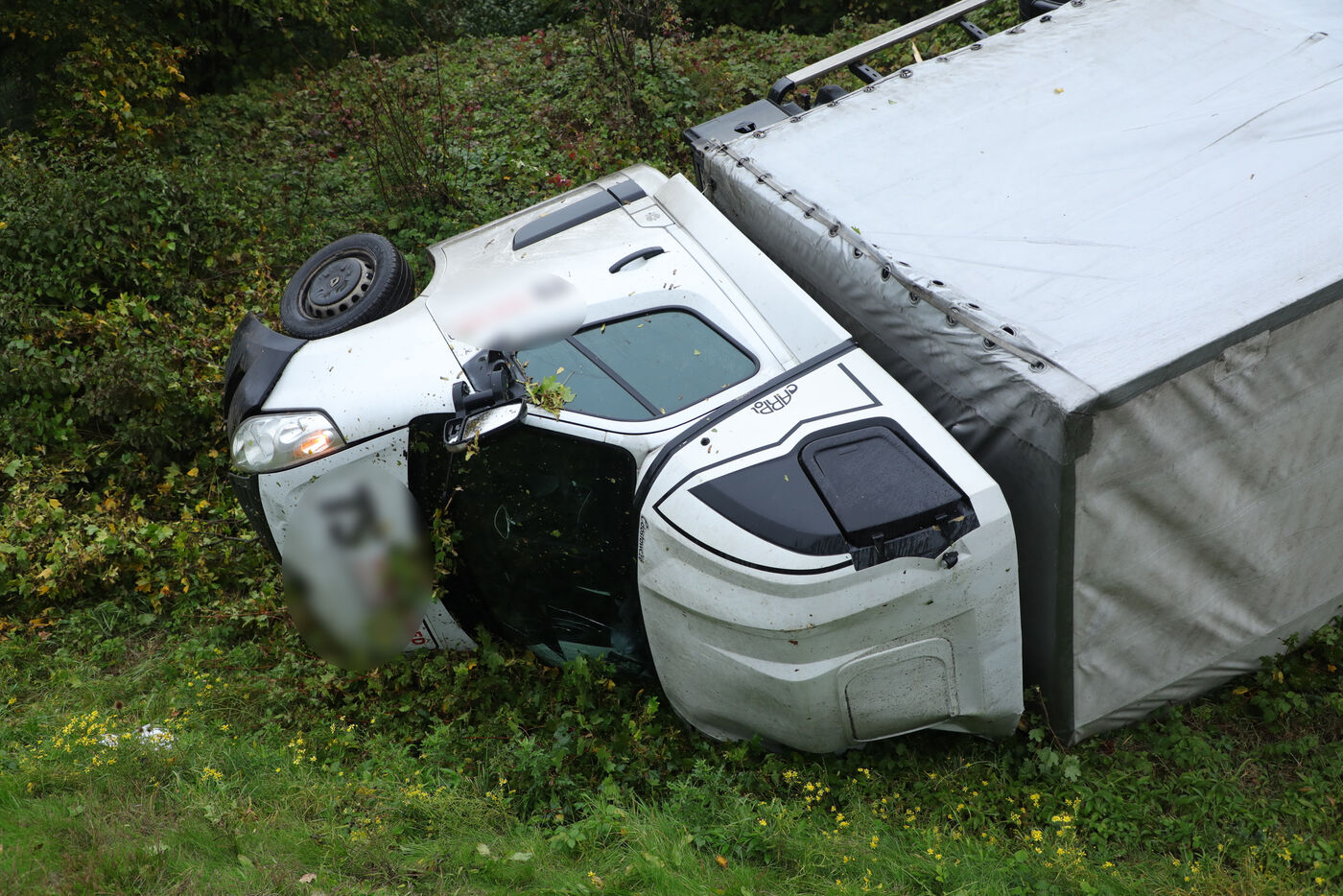 Der Kleintransporter blieb im Straßengraben auf der Seite liegen.