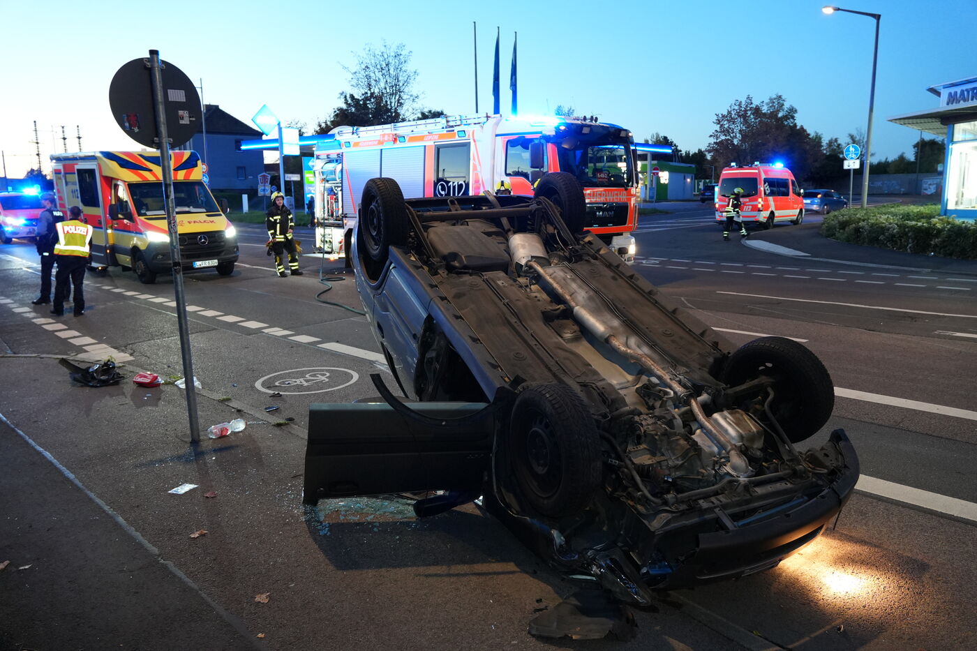 Bei dem Unfall auf der Essener Straße hatte sich am Samstagabend ein Auto überschlagen