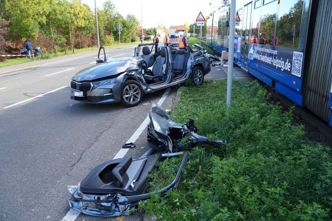 Leipzig-Grünau: Auto nach Zusammenstoß mit Straßenbahn „enthauptet“