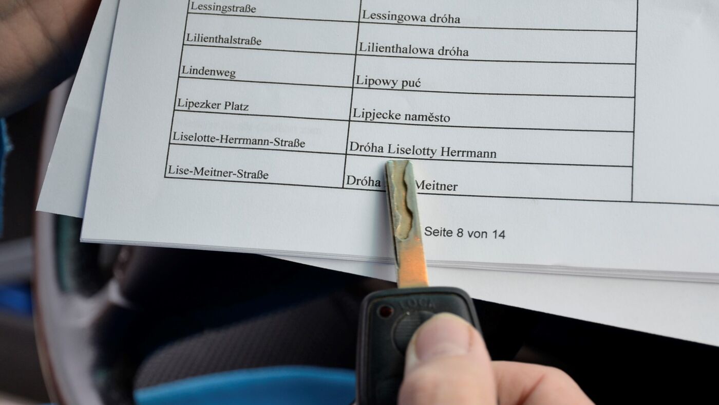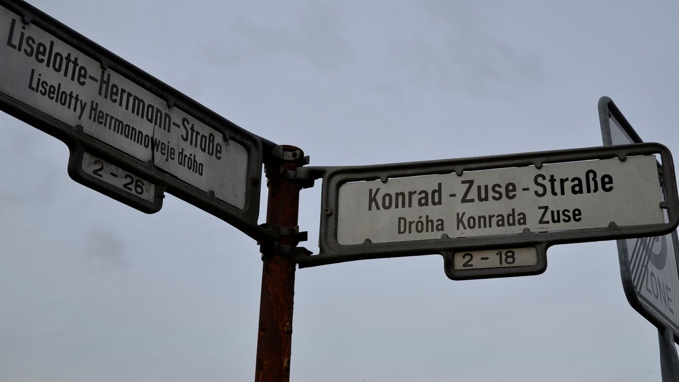 Die meisten Straßenschilder in der Hoyerswerdaer Neustadt müssen erneuert werden. Viele stehen schief, sind angerostet oder nur einsprachig beschriftet. Das Gesetz schreibt zweisprachige Schilder im sorbischen Siedlungsgebiet vor. Mitunter sei auch die sorbische Bezeichnung unter der deutschen fehlerhaft, sagte uns die ehrenamtliche Sorben-Beauftragte von Hoyerswerda, Gabriela Linakova.