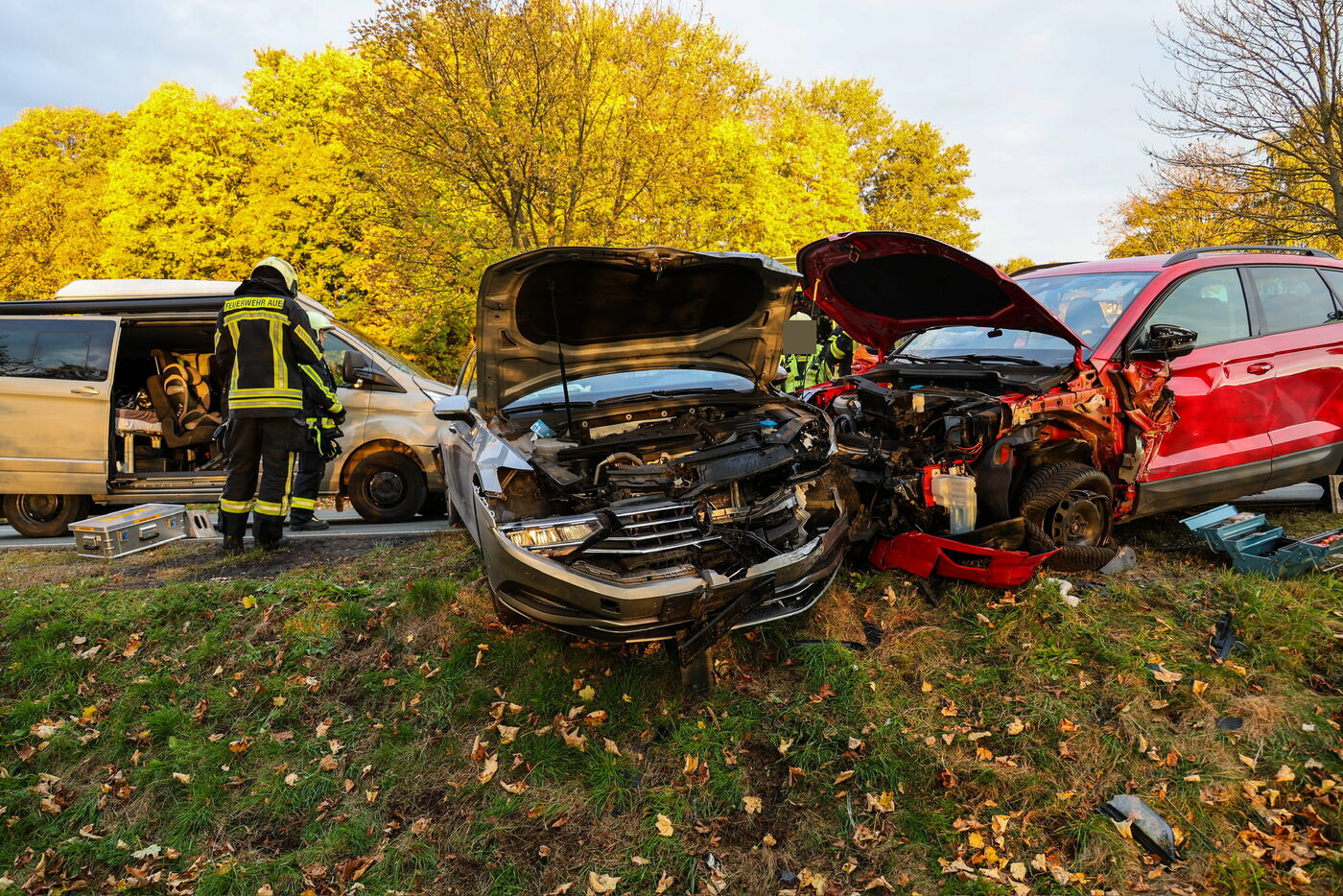Der Autobahnzubringer zur A72 musste bei Aue am Montagmorgen im Berufsverkehr nach einem Unfall gesperrt werden. Vier Fahrzeuge waren beteiligt. Ein Richtung Aue fahrendes Fahrzeug streifte ein entgegenkommendes Auto und stieß dann mit einem weiteren zusammen. Ein nachfolgendes Fahrzeug konnte nicht mehr rechtzeitig bremsen und prallte in die Unfallstelle. Insgesamt drei Menschen wurden verletzt in ein Krankenhaus gebracht, darunter ein Kind. Zur Schwere der Verletzungen ist noch nichts bekannt. Die Polizei ermittelt zum Unfallhergang.
