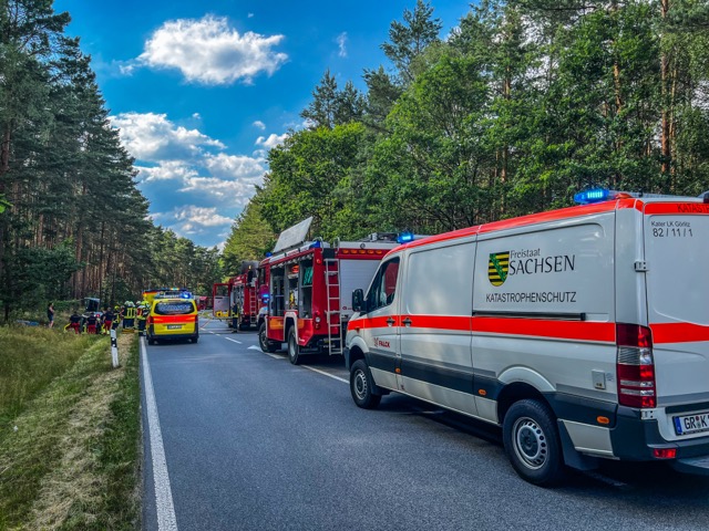 Bei einem Unfall auf der B115 nördlich von Niesky sind vier Menschen verletzt worden – davon zwei schwer. Eine 66-jährige Autofahrerin kam in einer Kurve vor Sandschenke auf die Gegenfahrbahn. Dabei stieß sie mit einem entgegenkommenden Pkw zusammen. Beide Autos landeten im Straßengraben. Feuerwehrleute befreiten den 46-jährigen Fahrer.
