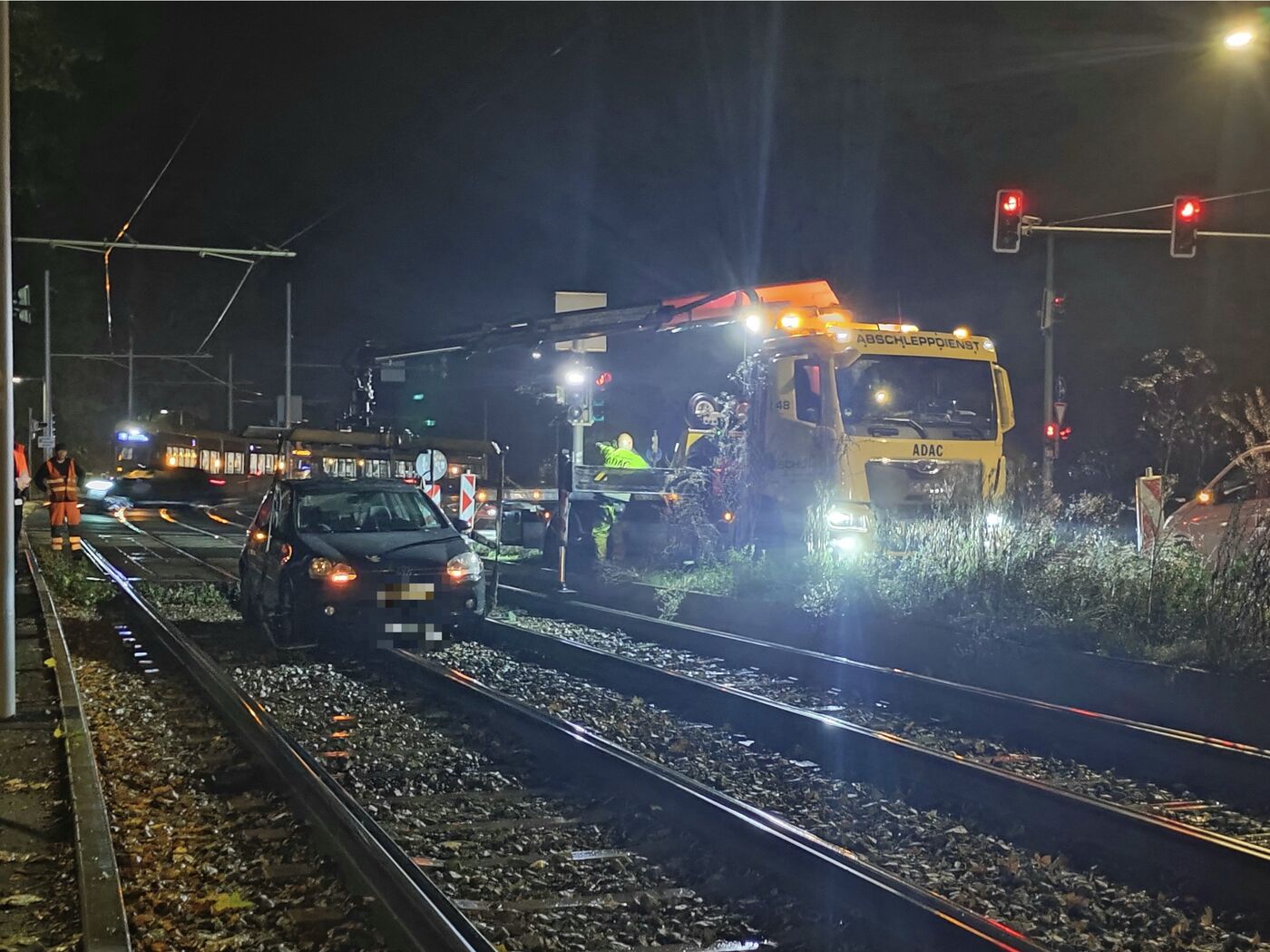 Am Mittwochabend ist dieser VW auf der Leipziger Waldstraße (Ecke Leutzscher Allee) im Gleisbett gelandet. Offenbar war der Fahrer falsch abgebogen. Das Auto wurde letztlich vom Abschleppdienst herausgehoben. Ob jemand verletzt wurde oder warum und wie es zu dem Unfall kam, ist unklar. Auf Anfrage erklärte uns eine Polizeisprecherin, dass man bisher keine Informationen dazu habe.