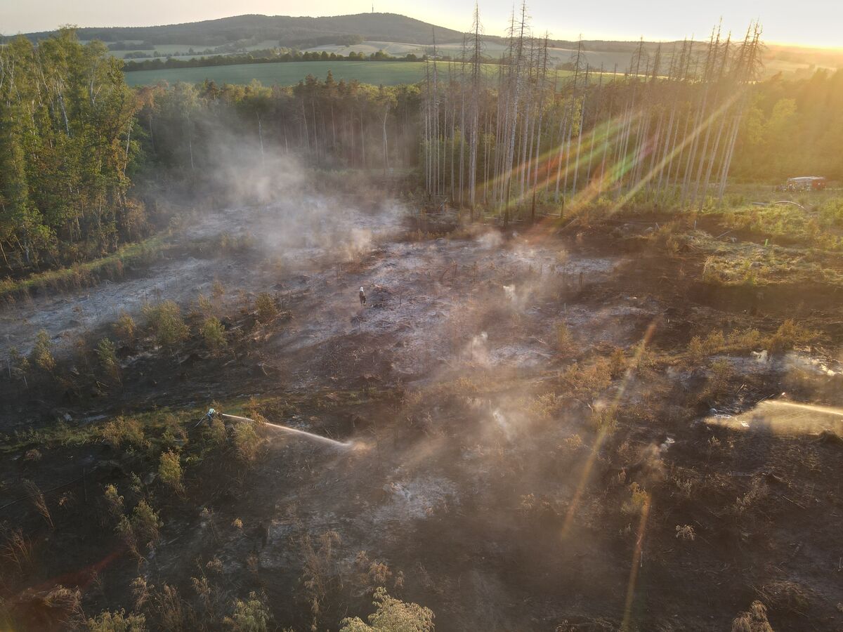 Der Waldbrand zwischen Oberlichtenau und Bischheim bei Pulsnitz ist am Donnerstagabend unter Kontrolle gebracht worden. Feuerwehrleute hielten über Nacht Wache. Sie sollen ein Wiederaufflammen des Brandes verhindern.