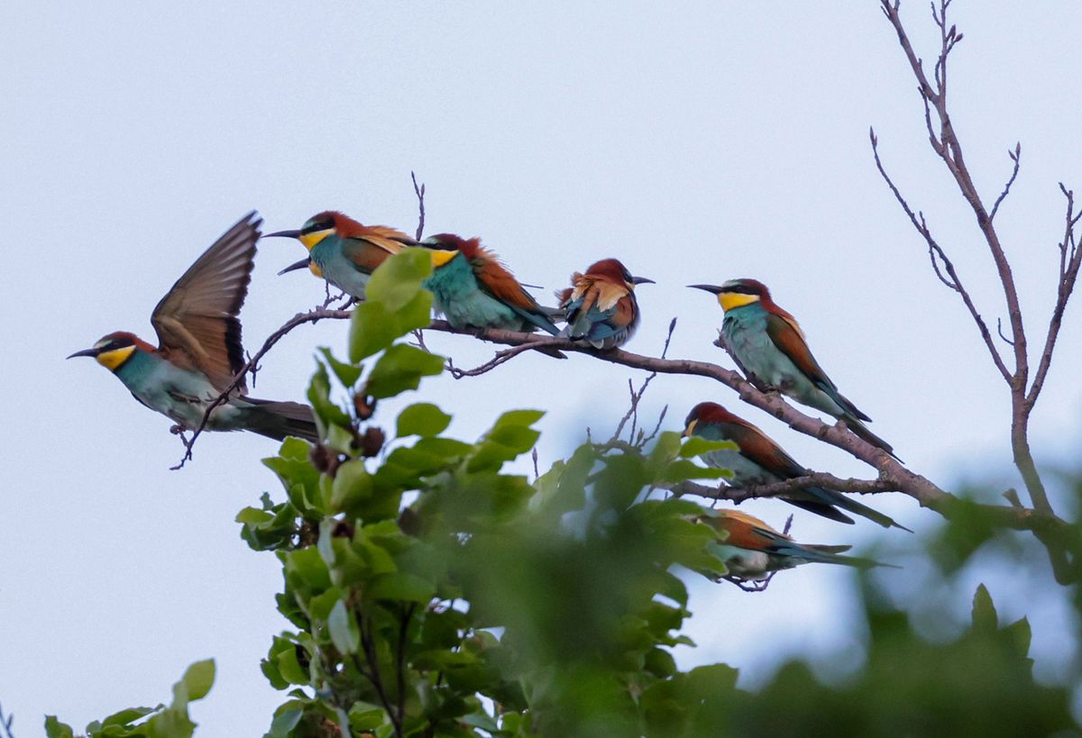 Doch Aufsehen erregen die tropisch-bunten Vögel immer wieder, so wie am Montag, dem 22. Mai, als sie von der zuströmenden Warmluft aus dem Süden immer weiter nach Norden getragen wurden. An verschiedenen Orten konnten an diesem Tag ziehende Bienenfresser festgestellt, deren markante Stimmen die Vögel verraten, auch wenn man sie hoch am Himmel gar nicht sehen kann.