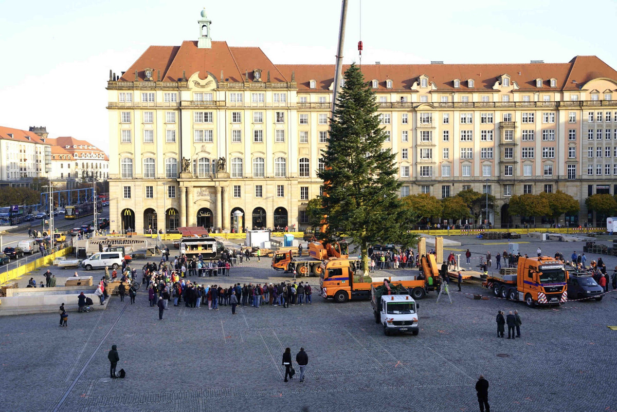 - Wie im vergangenen Jahr können Schaulustige beim Aufbau des Striezelbaumes auf dem Altmarkt mit dabei sein. (Archivbild)