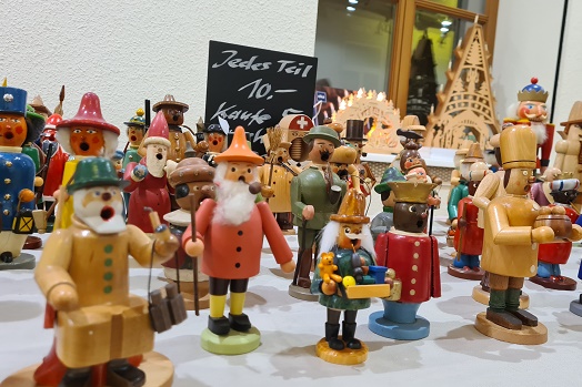 Es gibt Lichterfiguren, Schwibbbögen und Lichterecken, natürlich auch Pyramiden, Räuchermänner und Nussknacker. Alles Echt Erzgebirge, Fernost-Importe werden Sie da nicht finden.