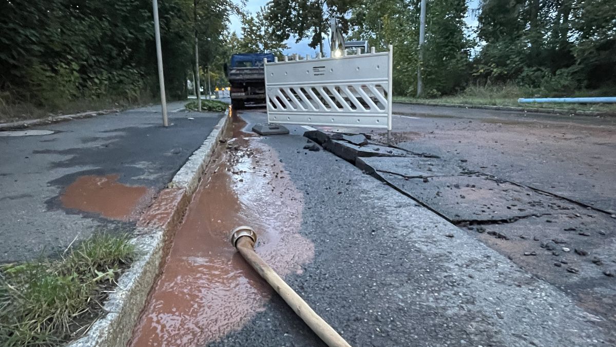 Die Straße wurde unterspült, die Schäden sind massiv. Es gibt bisher keine offiziellen Angaben dazu, wie lange die Reparatur dauern wird. Busse werden umgeleitet über Goethestraße, Marienthaler Straße und Heinrich-Braun-Straße.